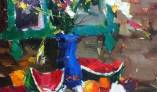 На выставке представлены живописные произведения автора, около 50 работ. Яркие, сочные картины в технике живописи маслом крупными мазками в жанрах - натюрморт, пейзаж, портрет.
