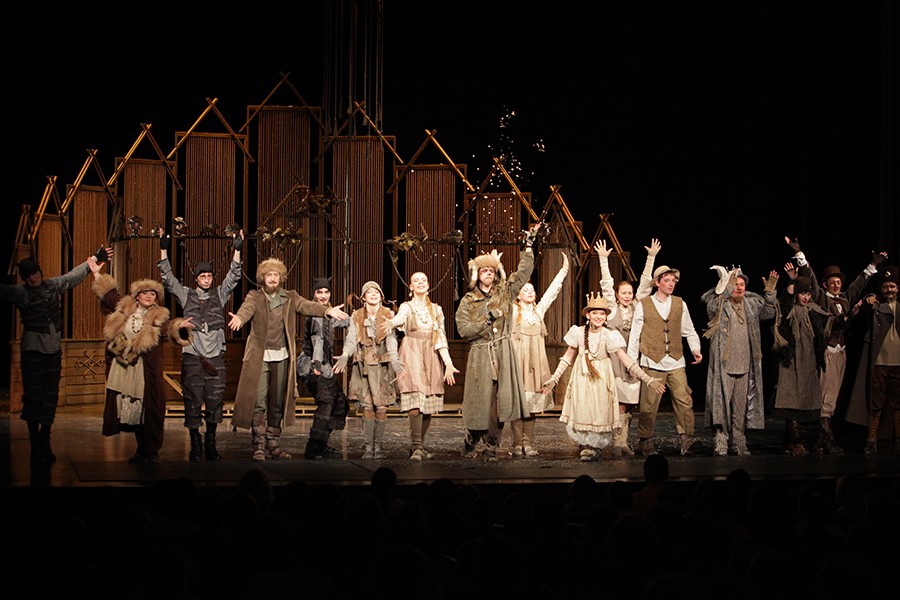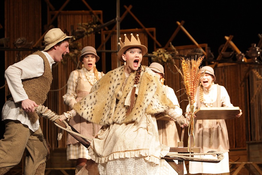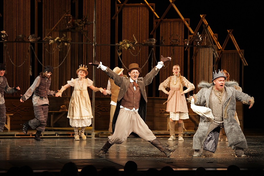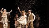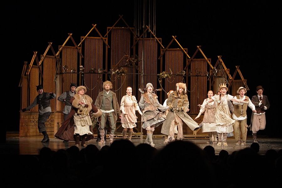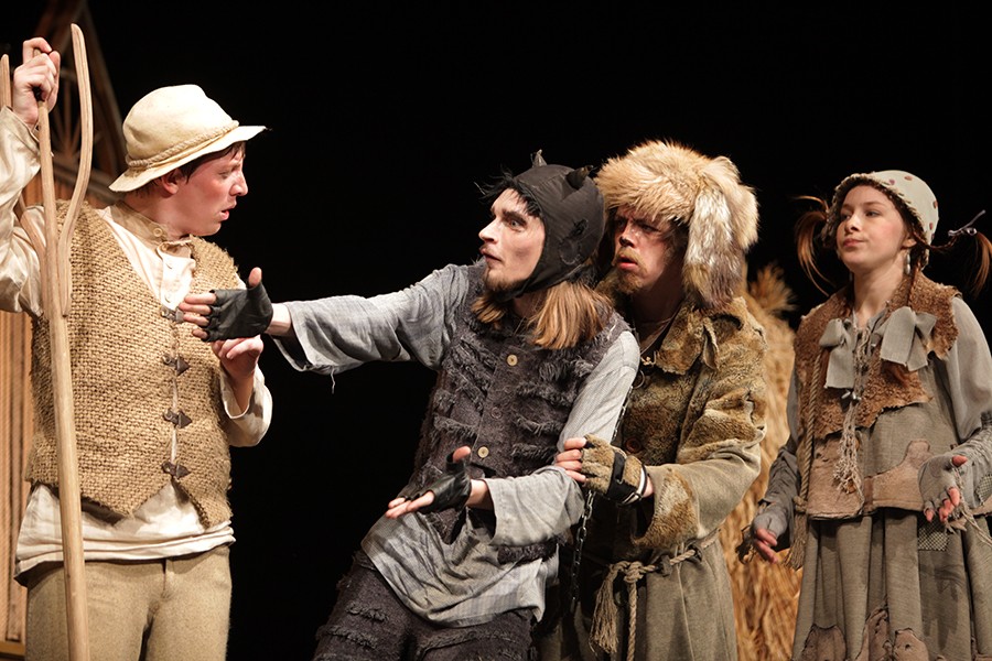 Сценография постановки не пестрит броскими яркими цветами, но органично передает мир сказок Льва Толстого: похожих на народные, полных мудрого нравоучения. Сюжет сказки прост: черти решили помешать Ивану, который только и делает, что работает.